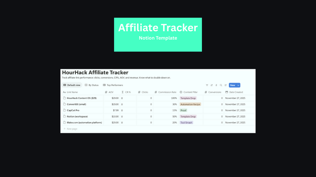 HourHack Affiliate Tracker — Notion Template